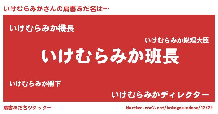 | 意味不明あだ名 | 『とにかく怪しいいけむらみか』 |