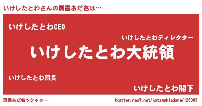 | 意味不明あだ名 | 『いけしたとわフォーエバー』 |