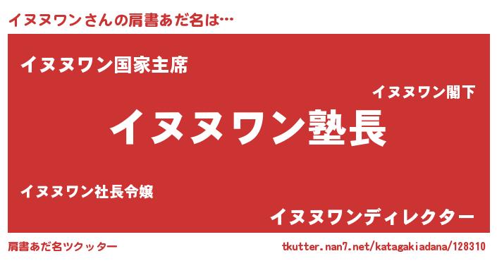 | 意味不明あだ名 | 『とにかく怪しいイヌヌワン』 |
