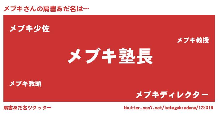 | 意味不明あだ名 | 『とにかく怪しいメブキ』 |
