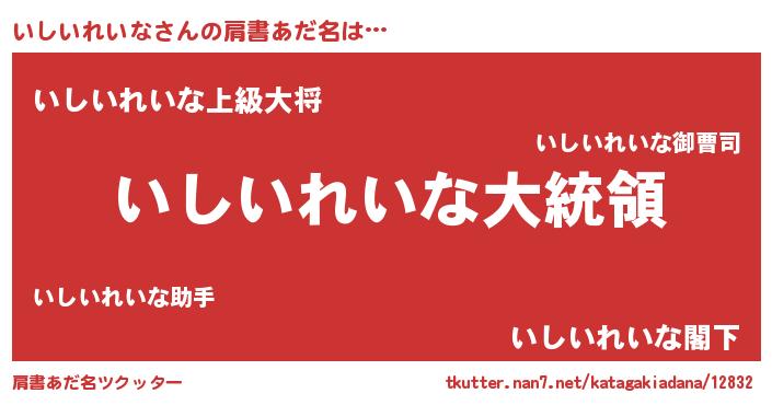 | 恥ずかしいあだ名 | 『いしっちょ』『イシイレイナデラックス』 |