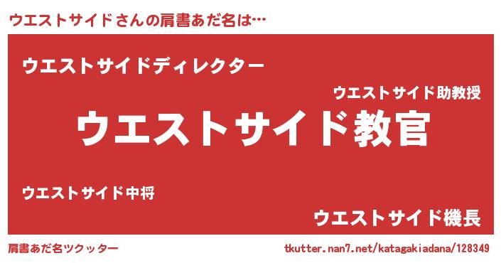 | 意味不明あだ名 | 『住所不定無職ウエストサイド(14歳)』 |