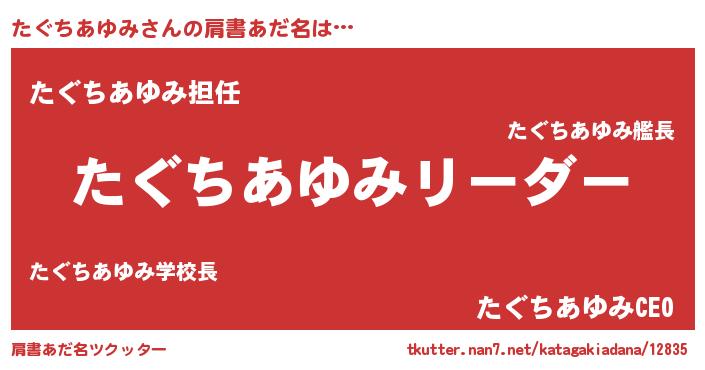 | 女子向けラノベタイトル風あだ名 | 『たぐちあゆみは平凡を望む』 |