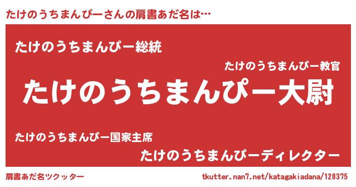 | 伝説のあだ名 | 『最強の忍者たけのうちまんぴー』 |