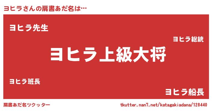 | ヘコむあだ名 | 『ヨヒラ(遠い目)』『ヨヒお』『豆乳』 |