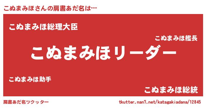 | 女子向けラノベタイトル風あだ名 | 『こぬまみほ様がみてる』 |