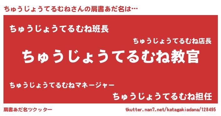 | 意味不明あだ名 | 『住所不定無職ちゅうじょうてるむね(68歳)』 |