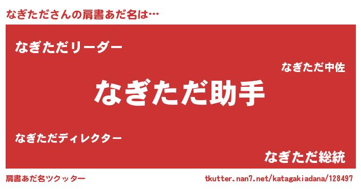 | 欧米人風あだ名 | 『ダニエルなぎただ』『ウサインなぎただ』 |