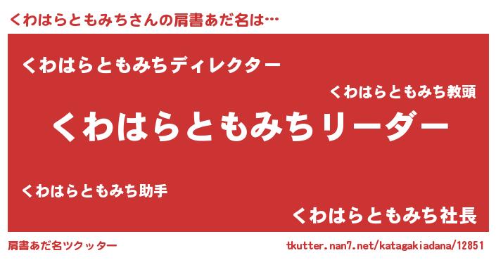 | 意味不明あだ名 | 『とにかく怪しいくわはらともみち』 |