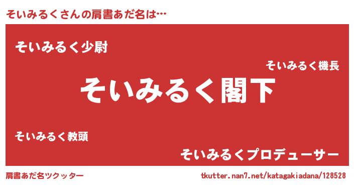 | 意味不明あだ名 | 『自称そいみるく』『永久保存そいみるく』 |