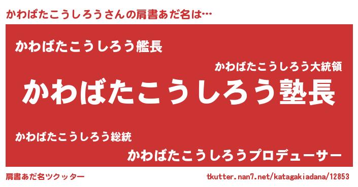| 胡散臭い通販商品みたいなあだ名 | 『信頼と実績のペンダント…その名も「かわばたこうしろう」』 |
