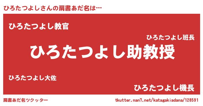 | 男性向けラノベタイトル風あだ名 | 『おまえをオタクにしてやるから、俺をひろたつよしにしてくれ! 』 |