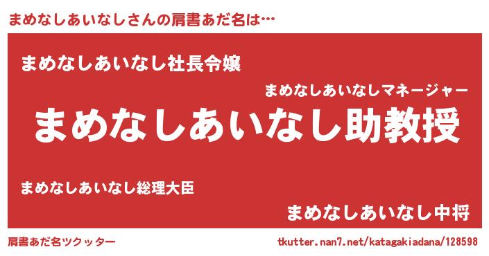 | 男性向けラノベタイトル風あだ名 | 『ノーゲーム・ノーマメナシアイナシ』 |