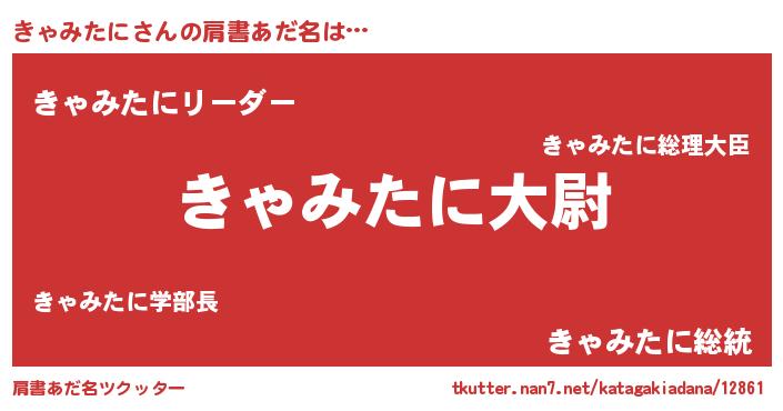 | 女子向けラノベタイトル風あだ名 | 『きゃみたにの玉の輿計画!』 |