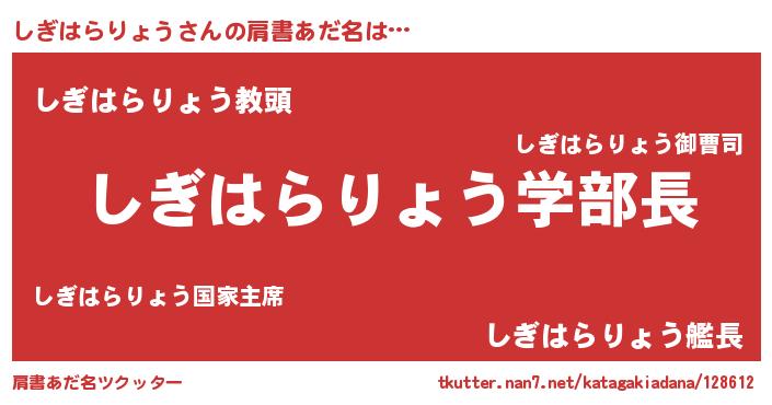 | ヘコむあだ名 | 『しぎはらりょう(遠い目)』『しぎふぇ~』 |