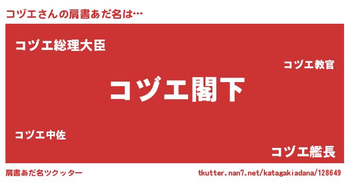 | ヒーロー風カッコイイあだ名 | 『超時空戦士コヅエ』『仮面コヅダー』 |