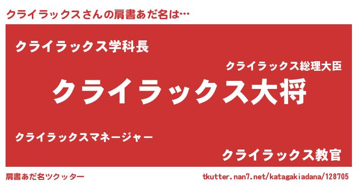 | ヒーロー風カッコイイあだ名 | 『慈愛の使者クライラックス』 |