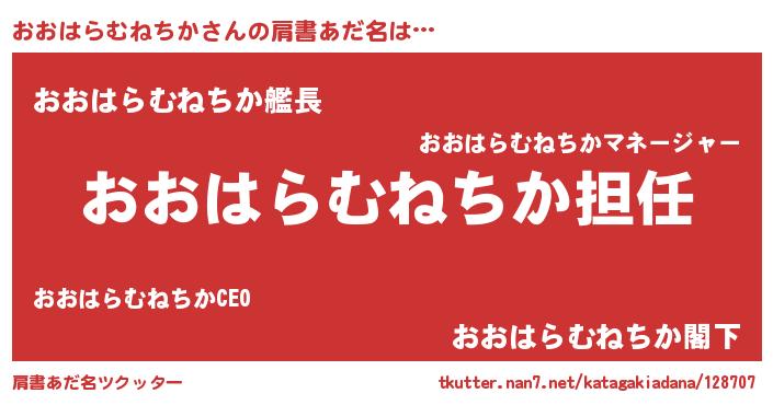 | ヘコむあだ名 | 『おおはらむねちか(苦笑)』『おおもー』 |