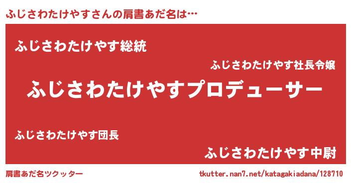 | 意味不明あだ名 | 『自称ふじさわたけやす』 |