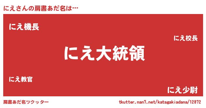 | 自動車の名前っぽいあだ名 | 『ニクア』『フェニーエ』『デミニ』 |