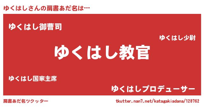 | ヒーロー風カッコイイあだ名 | 『仮面ユクダー』『スーパーユクハシ』 |