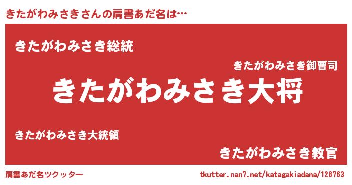 | 恥ずかしいあだ名 | 『キタガワミサキデラックス』『きたちん』 |