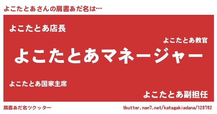 | ヒーロー風カッコイイあだ名 | 『スーパーヨコタトア』『ネオヨコタトア』 |