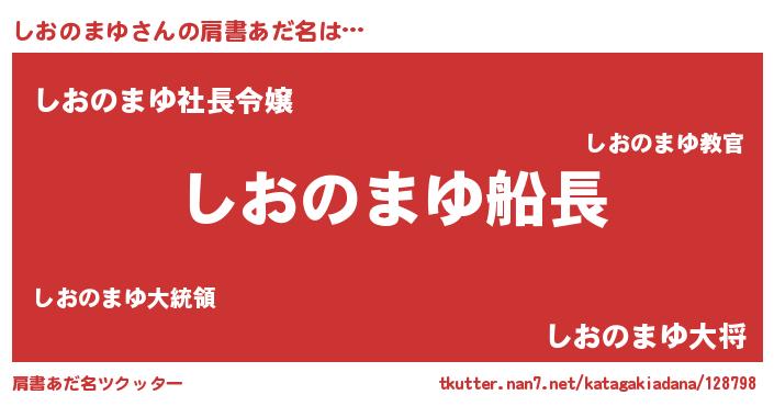 | 欧米人風あだ名 | 『しおのまゆ・ステッグマイヤー』 |