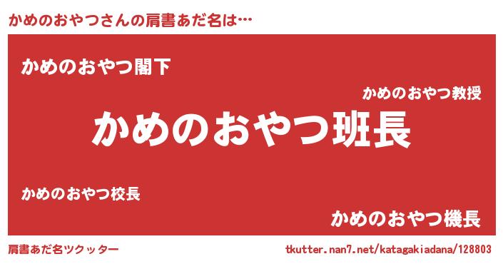 | 意味不明あだ名 | 『とにかく怪しいかめのおやつ』 |