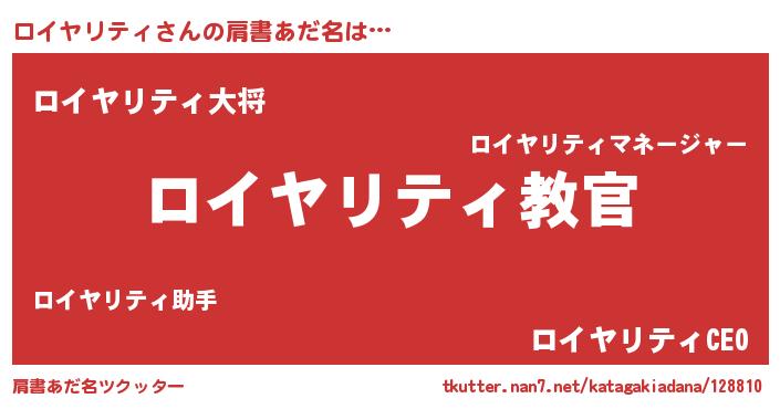 | ヒーロー風カッコイイあだ名 | 『仮面ロイダー』『スーパーロイヤリティ』 |
