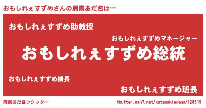 | 男性向けラノベタイトル風あだ名 | 『Re:おもしれぇすずめから始める異世界生活』 |