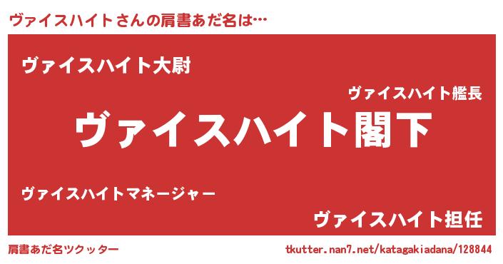 | 男性向けラノベタイトル風あだ名 | 『Re:ヴァイスハイトから始める異世界生活』 |