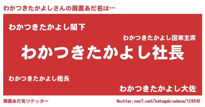 | ヒーロー風カッコイイあだ名 | 『スーパーワカツキタカヨシ』 |