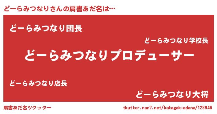 | 意味不明あだ名 | 『とにかく怪しいどーらみつなり』 |