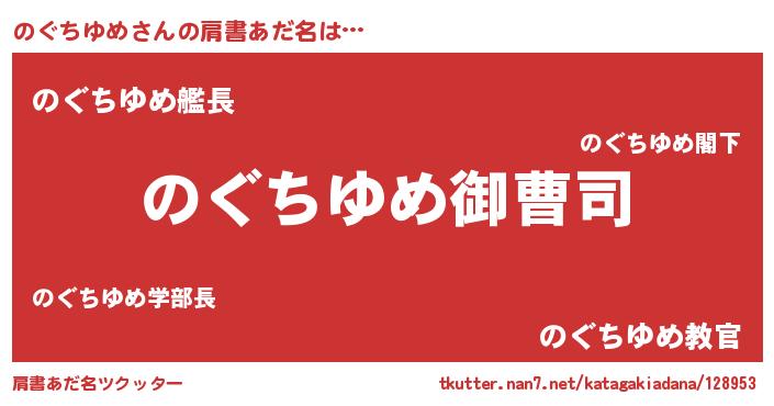 | 男性向けラノベタイトル風あだ名 | 『のぐちゆめの憂鬱』 |