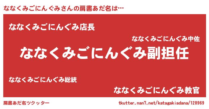 | 意味不明あだ名 | 『永久保存ななくみごにんぐみ』 |