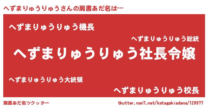 | ヒーロー風カッコイイあだ名 | 『スーパーヘズマリュウリュウ』 |