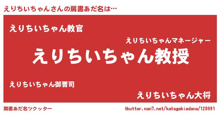 | ヘコむあだ名 | 『えりにー』『えり太郎』『酢こんぶ』 |
