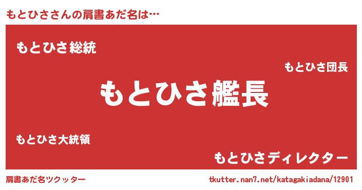 | 意味不明あだ名 | 『自称もとひさ』『もとひさフォーエバー』 |
