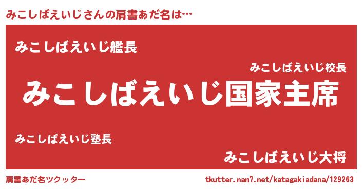 | 意味不明あだ名 | 『みこしばえいじフォーエバー』 |