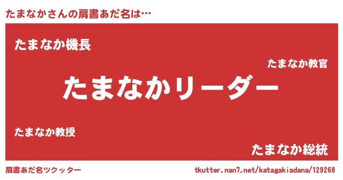 | ヘコむあだ名 | 『たまぷりん』『たまなか(遠い目)』 |