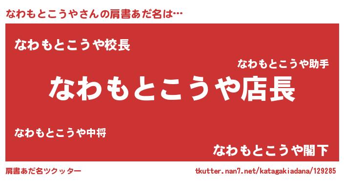 | ヘコむあだ名 | 『なわにゅー』『なわもとこうや(爆)』 |