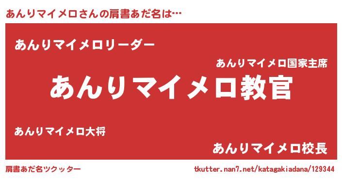 | 男性向けラノベタイトル風あだ名 | 『魔弾の王とあんりマイメロ』 |