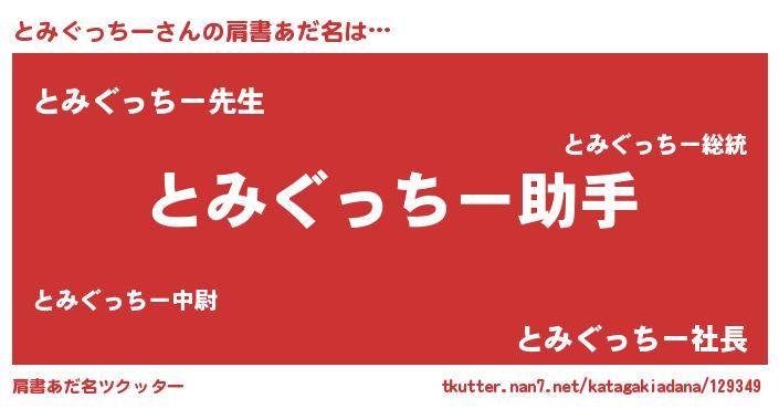 | 男性向けラノベタイトル風あだ名 | 『おまえをオタクにしてやるから、俺をとみぐっちーにしてくれ! 』 |