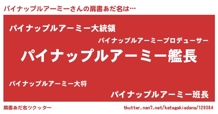 | 意味不明あだ名 | 『パイナップルアーミーフォーエバー』 |