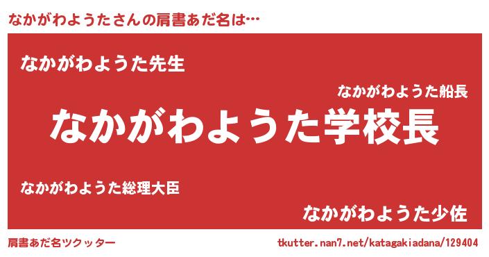 | ヒーロー風カッコイイあだ名 | 『慈愛の使者なかがわようた』 |