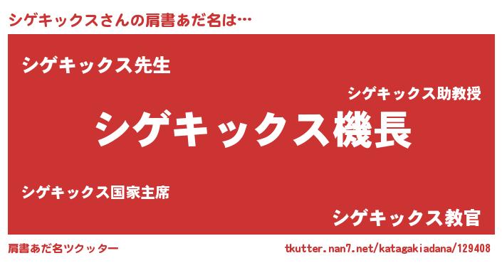 | 欧米人風あだ名 | 『シゲキックス・ステッグマイヤー』 |