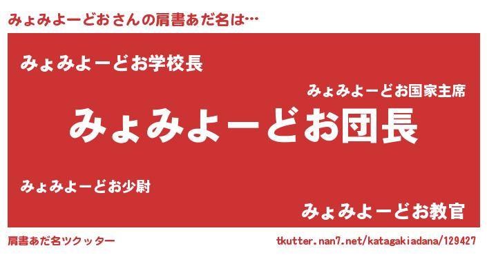 | ヒーロー風カッコイイあだ名 | 『天弓騎士ミョ』『仮面ミョダー』 |