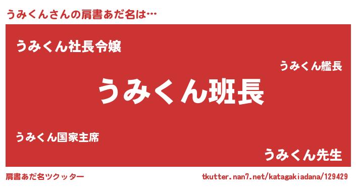 | ヒーロー風カッコイイあだ名 | 『暗黒騎士ウミ』『スーパーウミクン』 |