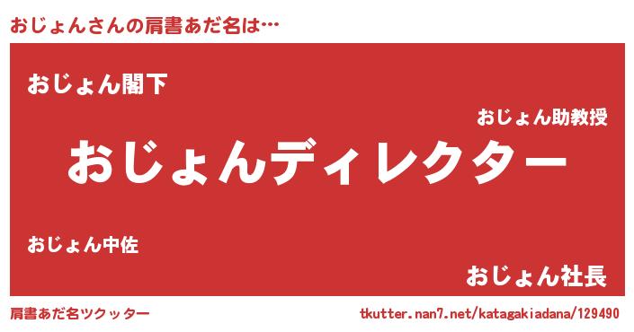 | 男性向けラノベタイトル風あだ名 | 『おじょんに滅ぼされるだけの簡単なお仕事です』 |
